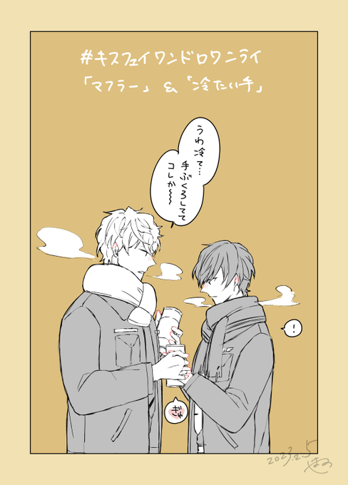 12 38 お題「マフラー」「冷たい手」(キスフェイ) +1h30min 安くて大きい缶コーヒー奢ってほしい #キスフェイ版ワンドロワンライOT 23/02/05 21:29