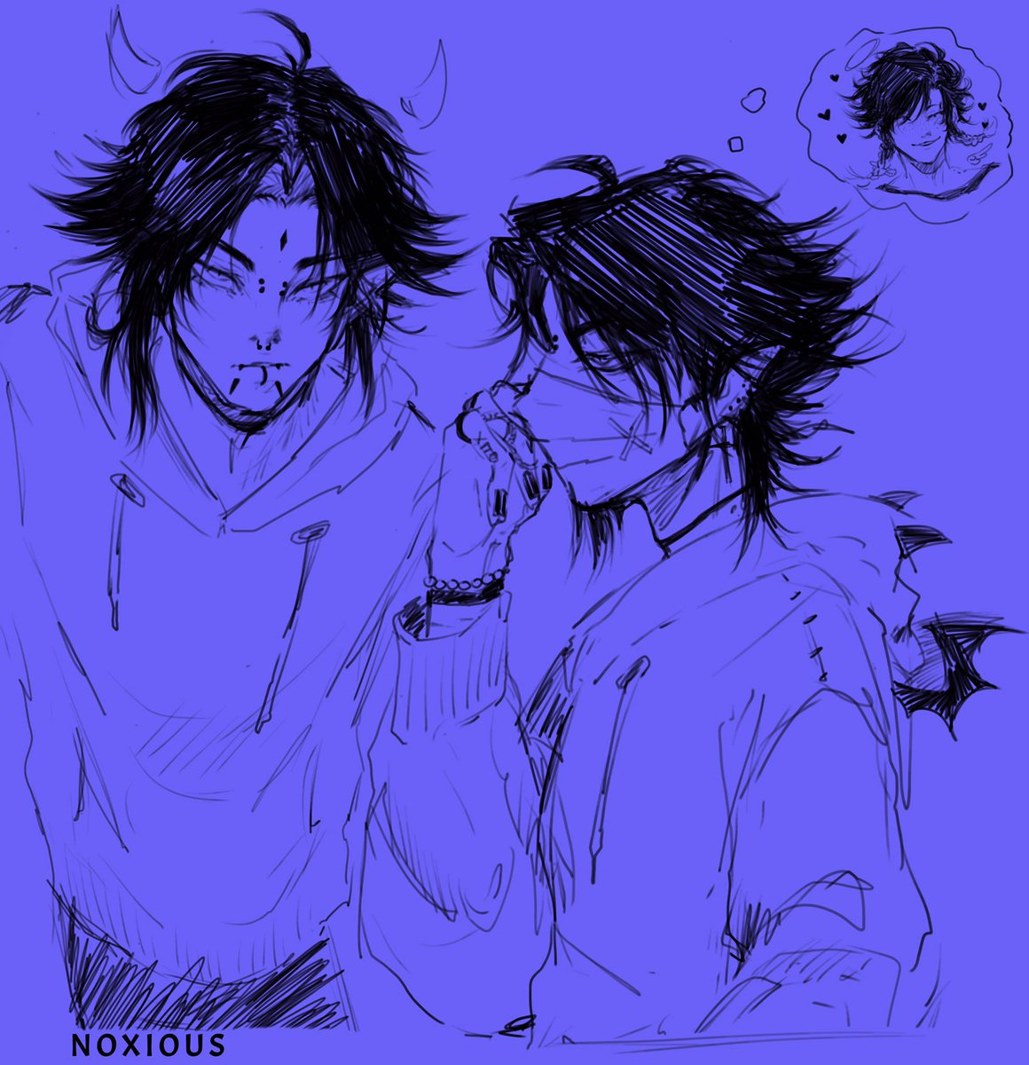 Emo, punk, and a cinnamon roll. My loves. #scaramouche #heizou #kazuha #genshinimpactfanart #kazuscara #kazuhei #heikazuscara