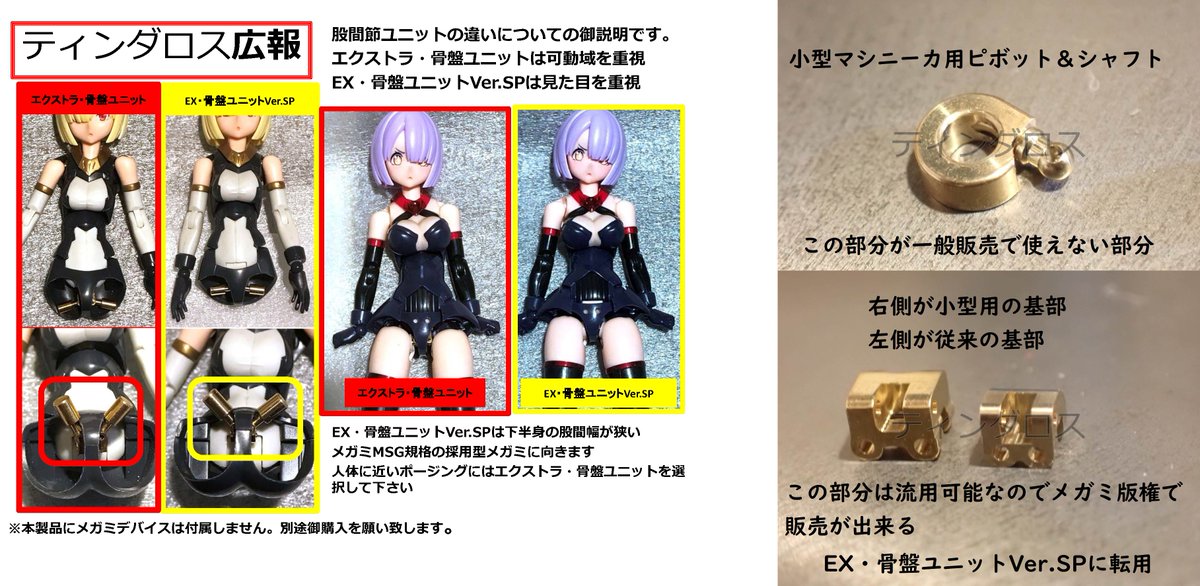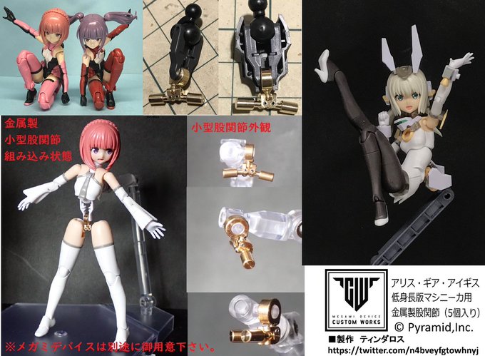 本日はメガミデバイス5周年 ティンダロスも頑張ります 年末年始にいのう商店様といろしか様にて限定商品の先行販売をします。 メガミMSGやスサノヲ向けの金属関節です。 EX・骨盤ユニットVer.SPです。 #メガミデバイス5周年 #メガミデバイス