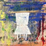 #Twitter展覧会 #イラスト #人形 小さな人形と絵を描いてた去年。人形は手元から離れた。人形の絵は色の奥に収まり、その上に私のブームの椅子を描いてみた…。