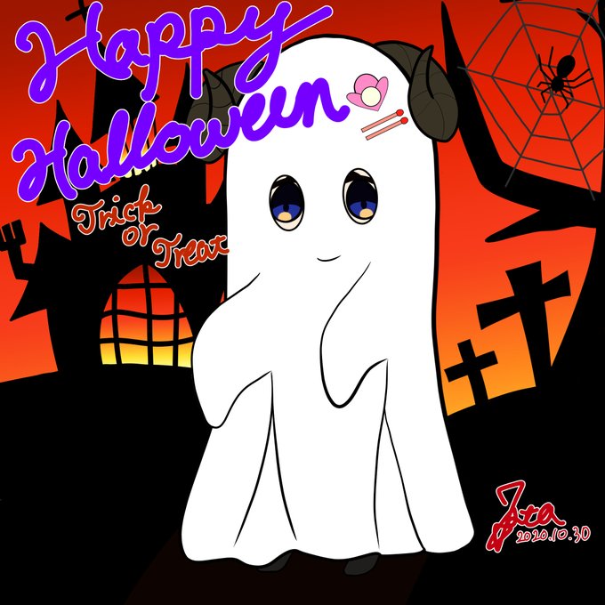 28 207 「シーツかぶっただけだっていうなぁぁぁ」 お菓子くれなきゃいたずらしちゃうぞ! #つのまきあーと #ハロウィンイラスト #角巻わため 20/10/30 19:39