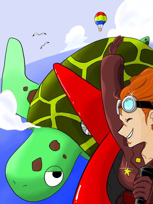 flying #デジタルイラスト #絵描きさんとつながりたい #オリジナルイラスト #亀 #女の子