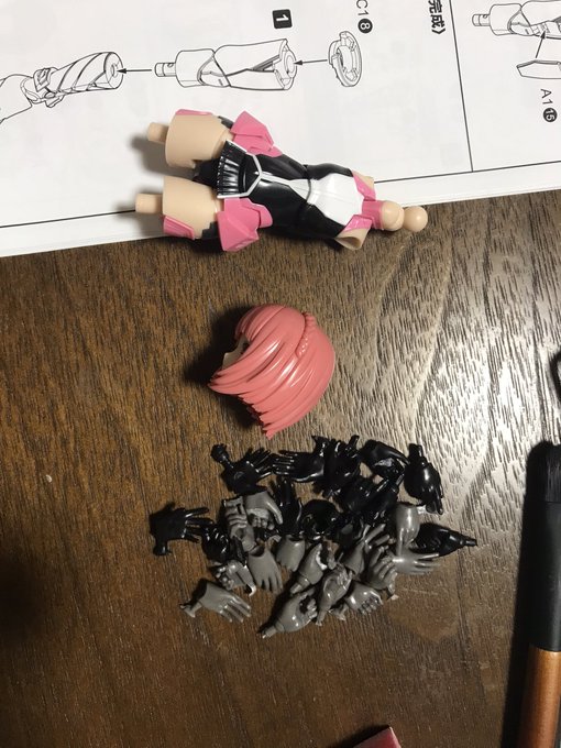アイカちゃんの本体完成しました٩( ᐛ )و アイカちゃんからの愛…( ˘ω˘ )💓 (手の形伝われ) あとは銃とかアイテムのみ。 でもまだパーツ数多い気がしてるよね…。 #メガミデバイス #プラモ好きさんと繋がりたい