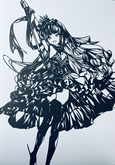 #切り絵 #アズールレーン #アズレン クイーンエリザベスMETAの切り絵が完成しました! モノトーンカラーを使わないのと、背景まで切り落としたのが久しぶりすぎた。