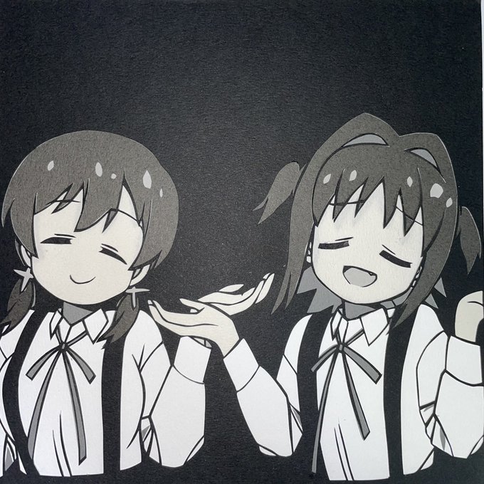 #切り絵 #お兄ちゃんはおしまい #おにまい #穂月かえで #穂月もみじ ついに完成しました! モノトーンカラーでかえでちゃんともみじちゃんを作りました!!