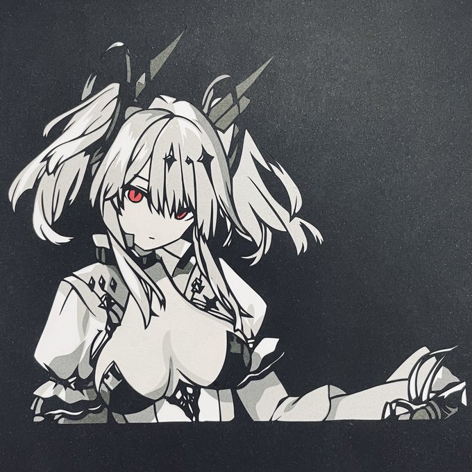 40 99 #切り絵 #アズールレーン #アズレン クイーンエリザベスMETAの切り絵が完成しました! モノトーンカラーを使わないのと、背景まで切り落としたのが久しぶりすぎた。 23/03/12 21:03