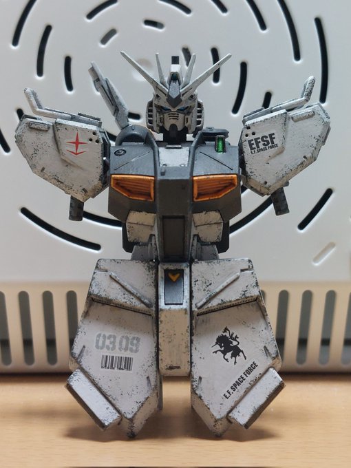 #今月作ったプラモ晒そうぜ #今月完成したプラモ晒そうぜ 神無月晦日🌾 EG νガンダムの近藤風仕立てでございます👨🍳 今月40になったけど、30を無職で迎えた事を考えればまだマシかな😅 チェ・ゲバラは39で死んだわけだし🇨🇺 年内にもう一体完成させたいが… 忙しい疲れた、は言い訳でしかないからね🤔