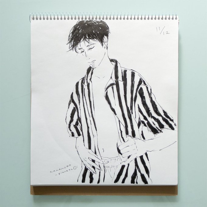 #クロッキー #ペン画 #アナログイラスト #人物画 #模写 やっぱり縞々描くのは楽しくて好き。