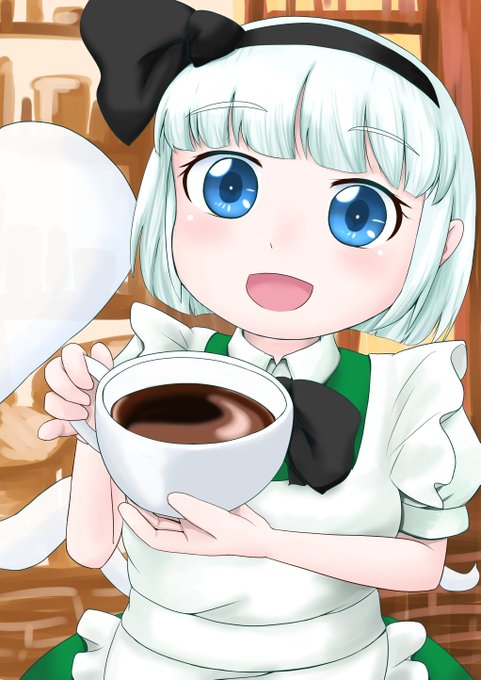 カフェ妖夢ちゃん描きました! 冬は暖かいコーヒーを飲みましょう。 #魂魄妖夢