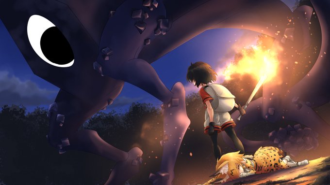#みなさん2年前の今頃はどんな絵描いてましたか 紙芝居動画第3話の戦闘シーン描いてました 暴走するダイアウルフ先輩を相手に触れなば即死のリアルかりごっこに挑むサーバルの図 #イラスト #けものフレンズ