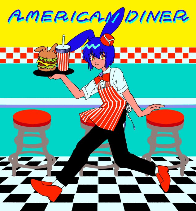 0 11 少し早めですが一ヶ月お疲れ様でした! アメリカンダイナー風に描いてみました🍔🍟 #イラスト #創作 #絵柄が好みって人がいればいいなぁ #今月描いた絵を晒そう 22/06/29 17:01