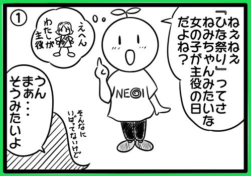 NEGI坊 4コマ漫画〜その8〜 久々に描いてみたよ この他に2本作成中です 楽しんでいただけたら嬉しいです #マンガ #イラスト #NEGI坊 #4コマ漫画 #イラスト練習中 #イラスト好きさんと繋がりたい #絵描きさんと繋がりたい 『ひな祭り①』