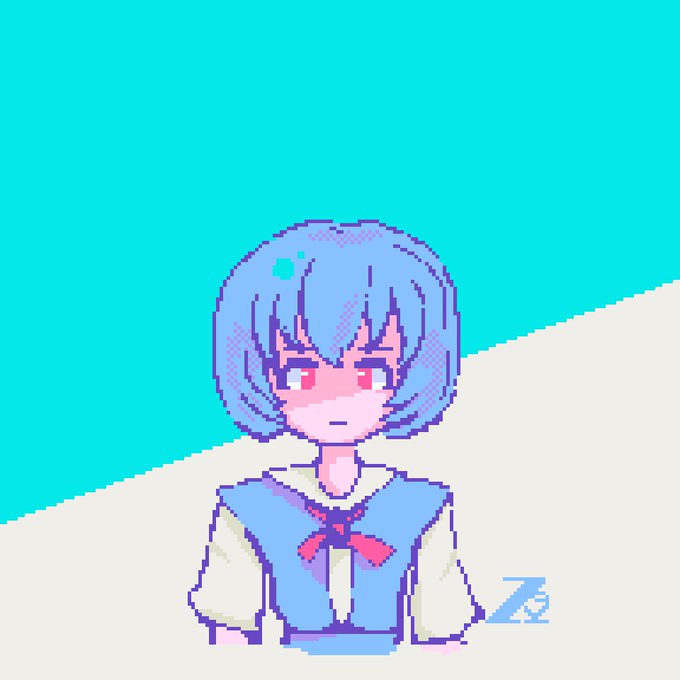 5 16 綾波( ̄^ ̄) #pixelart #ドット絵 #エヴァ 23/02/09 14:28