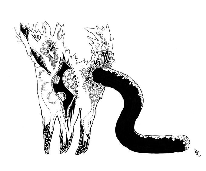 0 1 「My name is Legion, for we are many.」 過去絵の再掲。有名な聖書内のフレーズですが直接的な元ネタ(着想)はHammerfallの曲のイントロからです。 #ペン画 22/09/15 01:46
