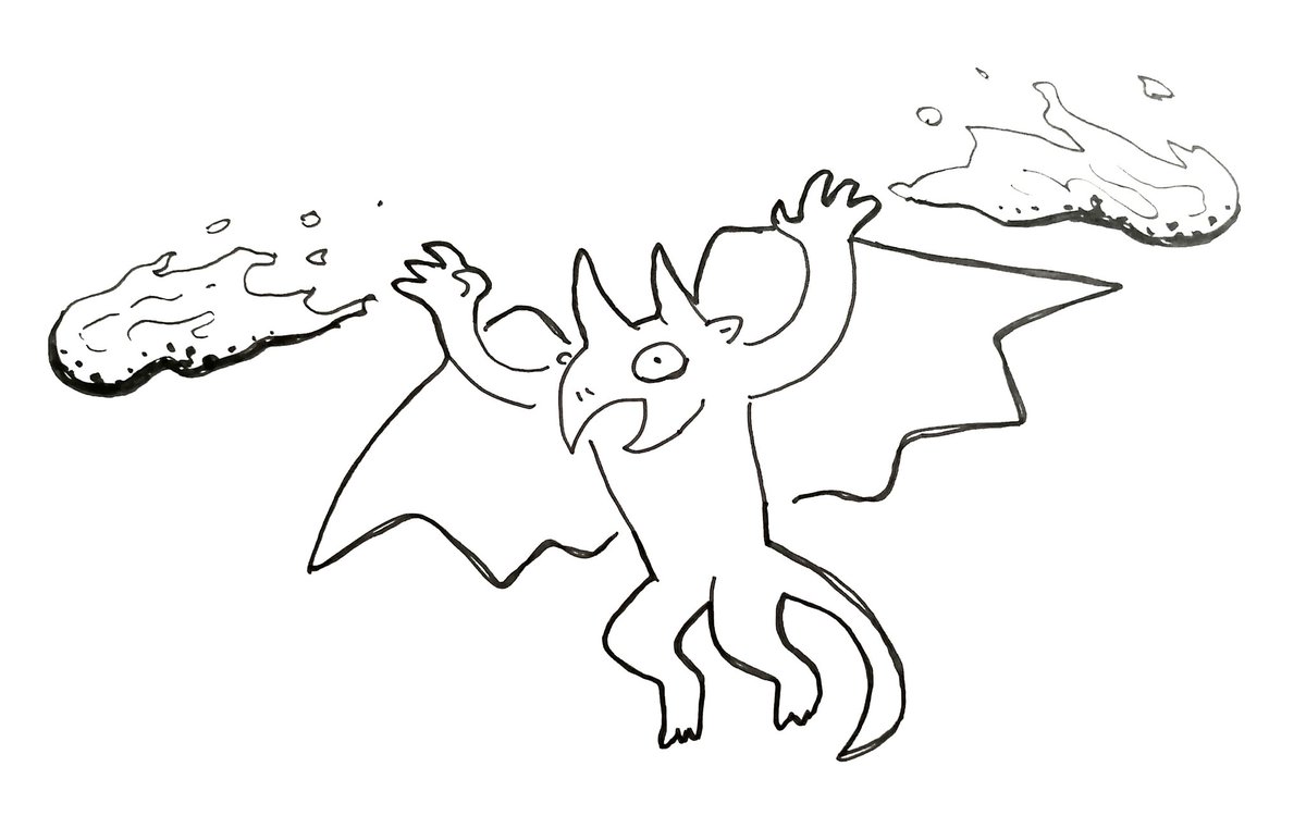 「火術を使うガーゴイル」 過去絵の再掲。 #ペン画