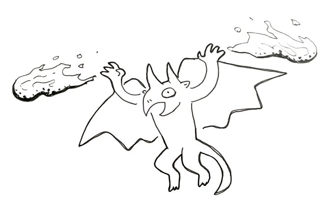 0 1 「火術を使うガーゴイル」 過去絵の再掲。 #ペン画 22/09/15 01:50
