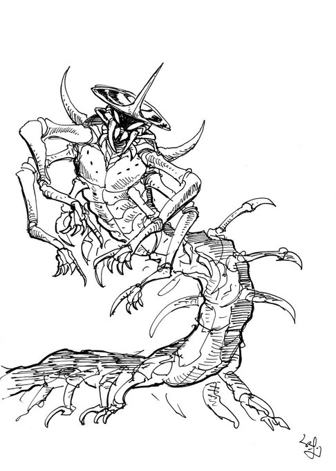 「ザラガス」 「ゴドラ星人」 過去絵の再掲。ゴドラ星人は腕の構造を間違えたけど絵は気に入っています。