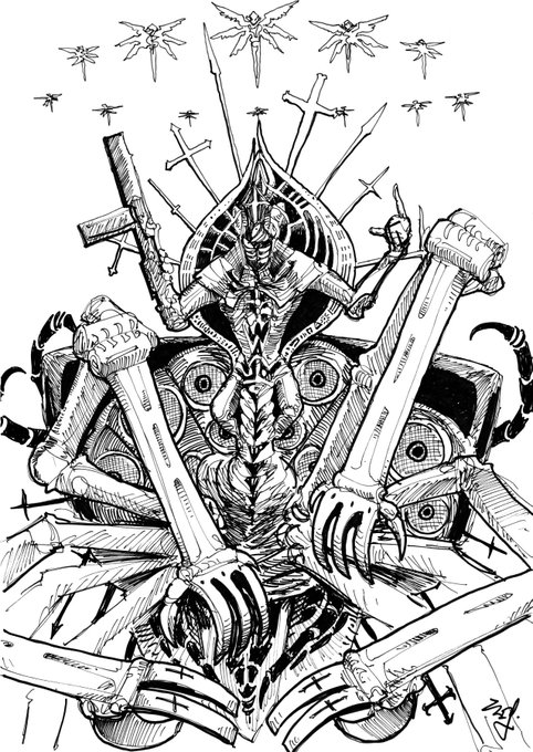 「My name is Legion, for we are many.」 過去絵の再掲。有名な聖書内のフレーズですが直接的な元ネタ(着想)はHammerfallの曲のイントロからです。 #ペン画