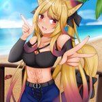 #これを見た人は夏らしい画像を貼る #VRChat -Skeb- クライアント:ラシード(VRC)さま (@ torisuto_vrc) 『舞夜ちゃん』 毛先のグラデーションがとても素敵なキャラクターで楽しく描かせいただきました。 背景は、これからの季節をと思って浜辺にしてみました。