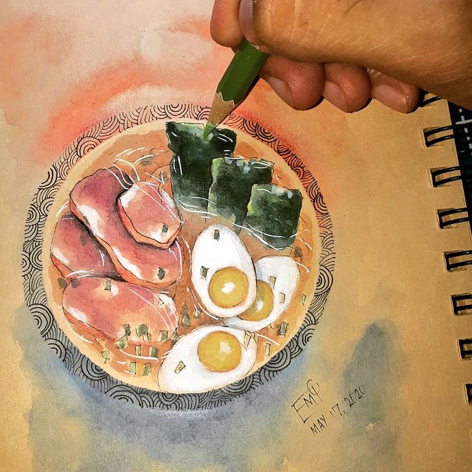 I #think I'm #crazy for #meat, How about you? #Suggest the next #DISH in the #comments, #cooked it with some pencils. It looks great because I glazed it with some white #ink. The #mostawaited #seasoning ,added some #gouache. #artph #ArtistOnTwitter #craving #foodart #artvsartist