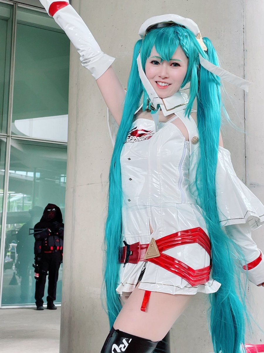 【Cosplay】 レーシングミク 2022 necoさんの富士戦のイラストを参考にポージングしたけど難しかった💦 📸 @rst1260c_ca #コスプレ