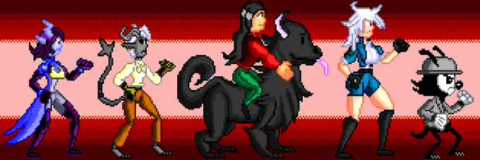 2nda tanda de personajes que ilustre en #pixelartist Con personajes de comics que traduje Rei de @TheNeonWerewolf Finley de @SharpiBees Delila y Arlo de @CEREBROHEART Madison Wynter de @DangerZoneOne Artie de @ArtieTom
