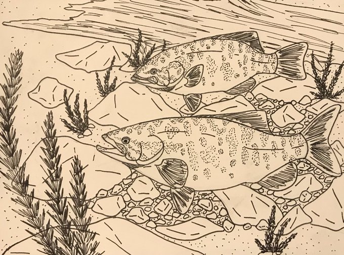 For #inktoberday9 and #SundayFishSketch , a pair of Micropterus dolomieu dutifully guard their bed. #inktober #inktober2022 #SciArt #scicomm #Artists