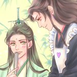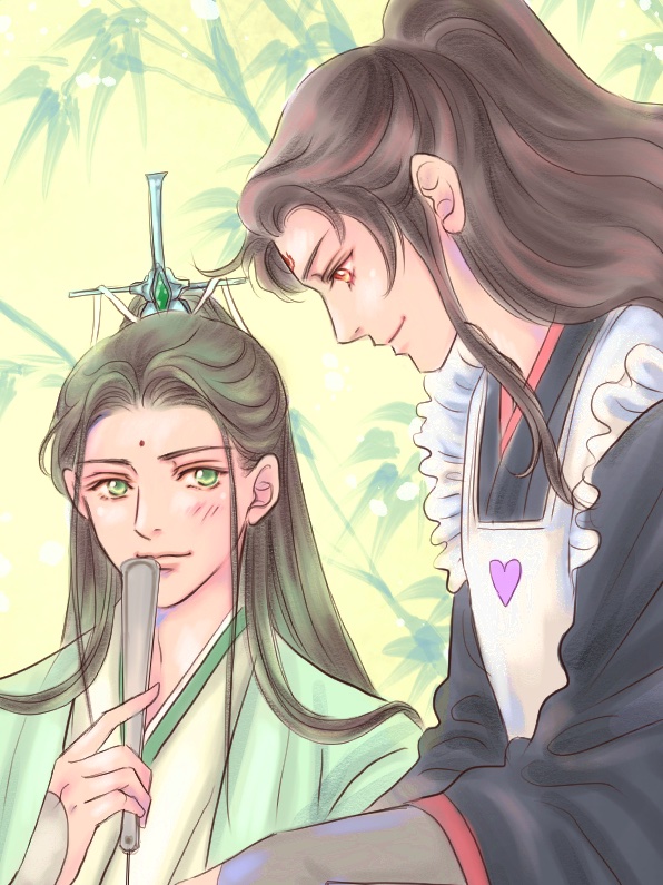 フリフリエプロンを素で着こなす弟子と、それを見てキュンキュンする師尊。😇💖 #人渣反派自救系統 #冰秋 #svsss