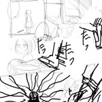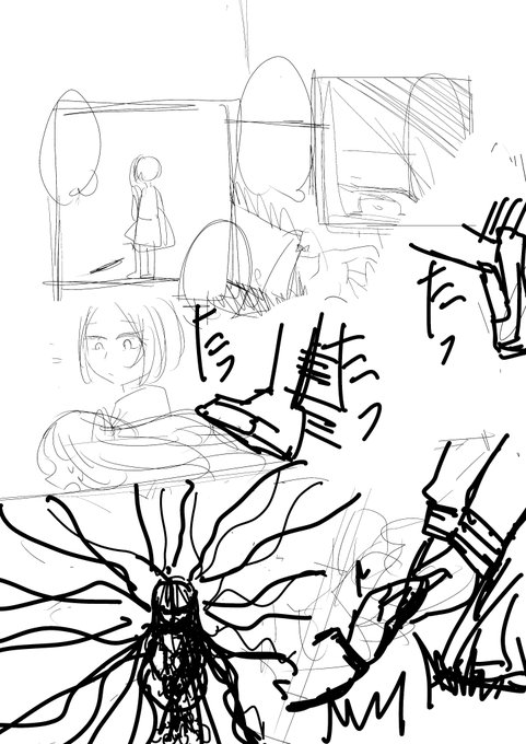 ここ1年で上半分のコマ割りがお気に入りのやつ 太字のラフはペン入れしていた時に書き加えたやつだと思われる #このタグを見た人はラフ画とその完成絵を見せる