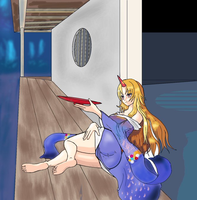 勇儀ねえさん描けました。 フィルター無しと在りの差分になります。 #星熊勇儀 #東方絵描きさんと繋がりたい