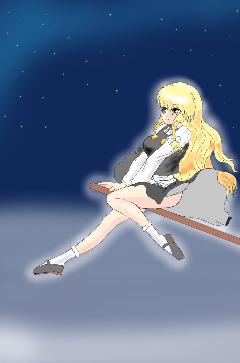 4 21 時間に余裕があれば、こんな感じの絵が描きたかった。 #7月7日は魔理沙の日 #毎月7日はルーミアの日 #衣装チェンジ 22/07/07 14:25