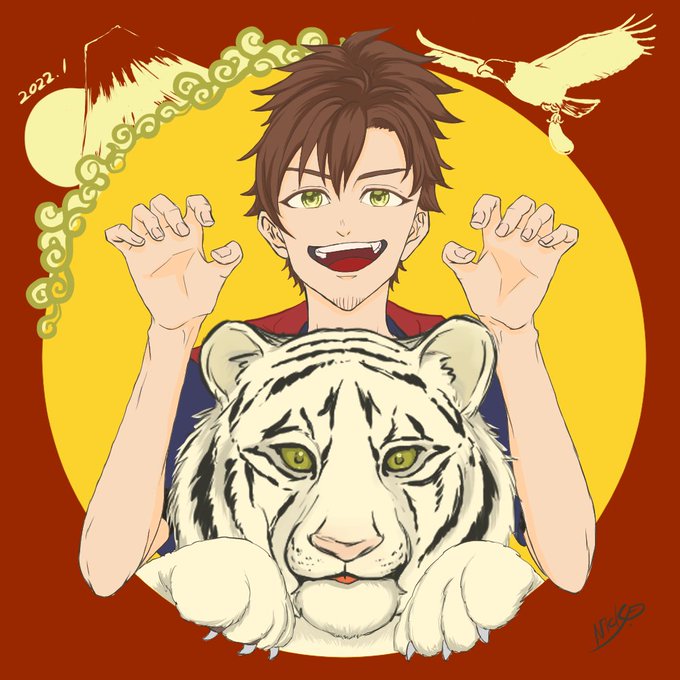 9 27 #乾忍相書 「ガウガウ!」 お正月っぽい絵が描きたかっただけです。 22/01/06 22:13