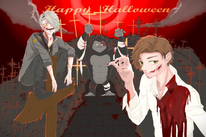 14 57 #漢気名画 #乾忍相書 #ゴリアート happy Halloween👻 (血糊とメイクです) 22/10/31 08:30