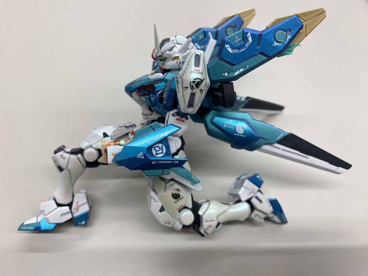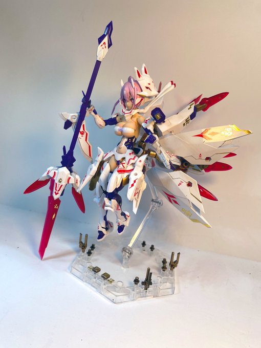 #プラモ見せあって憂鬱な月曜を乗り切ろうぜ #アルカナディア情報局 @arcanadea_info にイイねを頂いたので土日に全塗装した #ヴェルルッタ をあげておきます。 ①翼のグラデーション(10色) ②メタリックは青から紫に偏光 ③翼は赤紫から青に偏光 ④スカート左裏は星空🌌 右裏は深海の絵 twitter.com/i/web/status/1…