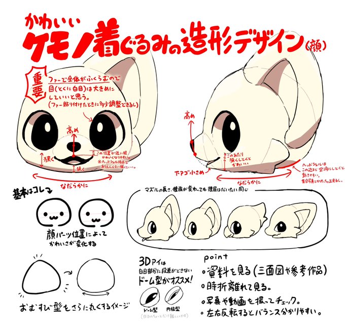 【かわいいケモノ着ぐるみの造形デザイン(顔)】 絶対!かわいくなります!(主にぼくの好み) あと必ず自分の好みとかアレンジとか加えて良い感じにしてください! (何もかもを都合よく解釈して己のモノにしてくれ!!!!) かわいい子が生まれることを願っています!!!!🙏✨