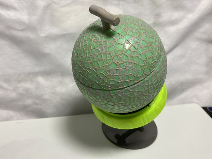 にゃぁ~にゃにゃぁ~にゃぁ~にゃにゃぁ~ 「緑色彗星帝国ふたたび!」 メロンの網目はこだわり始めると果てがない!! これと言う正解がないので、とりあえず 手を止めようにゃぁ 夕べのサンドイエローの上に水性で調色した色を ペタペタ塗りました。 #デスクトップアーミー #FAG