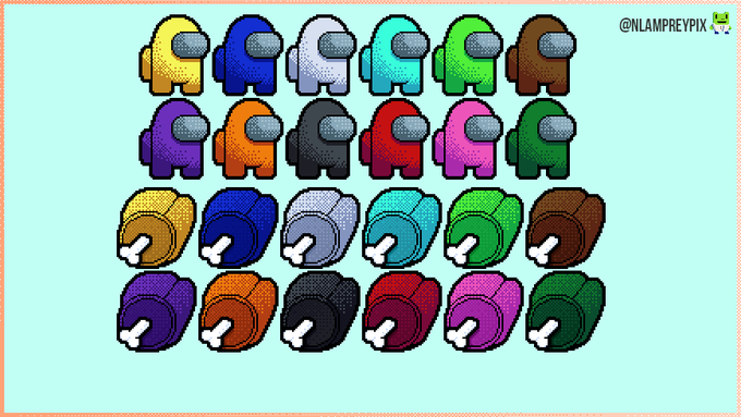 Rework of my @AmongUsGame pixelart crew 12 crewmates, 24 pixelarts. Who is sus? #pixelart #ドット絵 #AmongUs #AmongUsFanart #amongusart If you liked this, you can help me making a donation here: ko-fi.com/nlampreypix