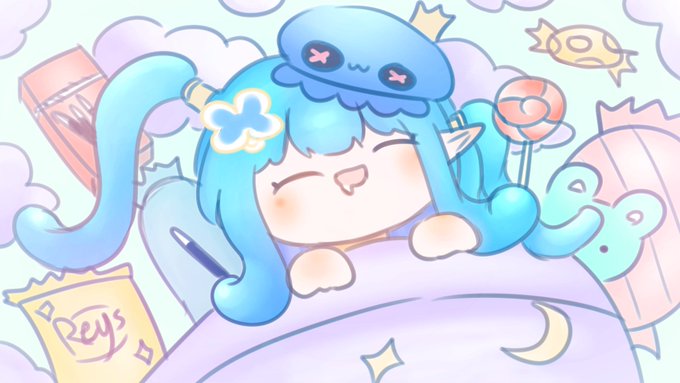 22 123 🍰🍮🍭เอสต้านอนหลับไปกับขนมแสนอร่อย🥯🥞🍰 เอามาลงสีเพิ่มจากรูปคอมมิชชั่น(?) ของเด็กหญิง Kitsuneko Mewten ครับ #EstaaArt 23/03/13 01:05