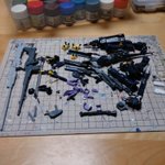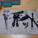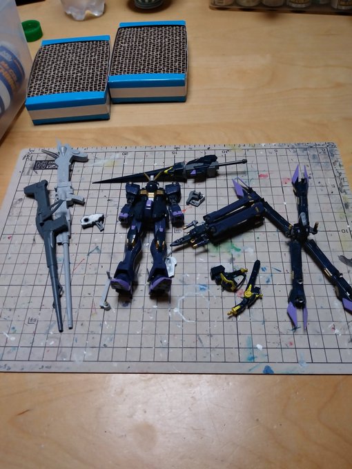 後ちょっとで完成。 クロスボーンガンダムX2 後は改とノーマルのバスターランチャーとライトパープル部分の塗装etc. #ガンプラはどんな自由な発想で作ってもいいんだ #ガンプラの画像貼るとRTされると聞いて