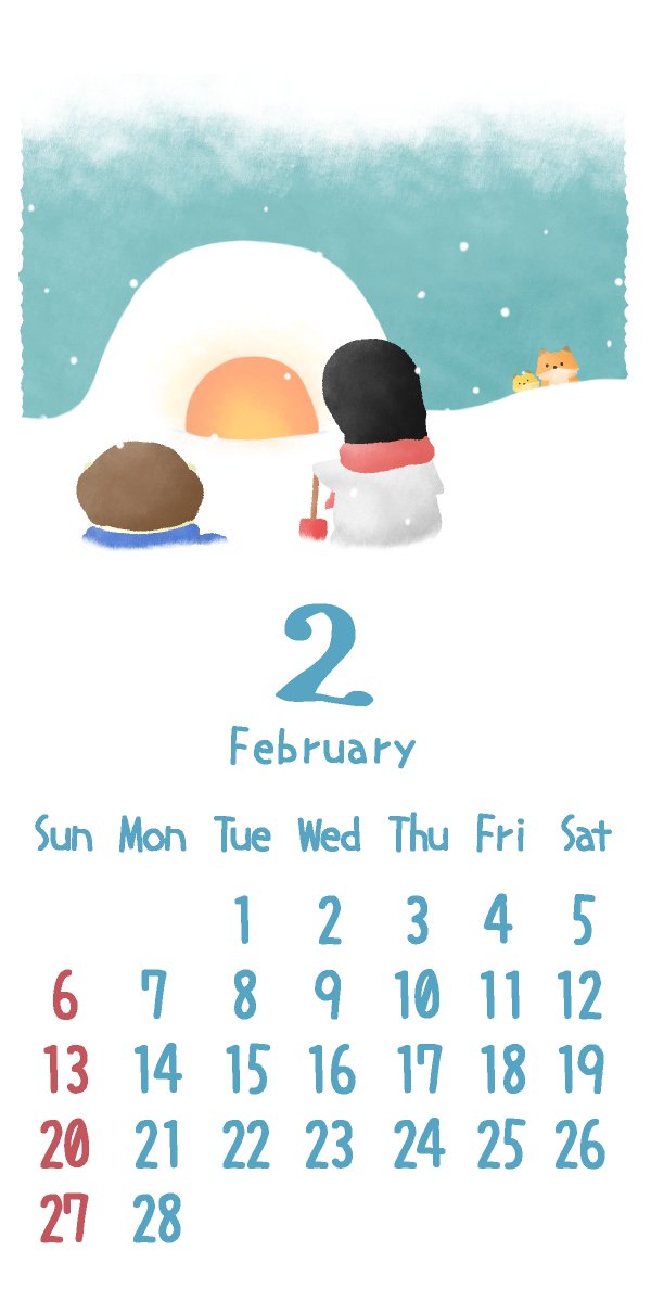 いい絵だなあと思ったので2月のカレンダーを作りました。 今日は4コマの代わりにカレンダーです。 #リーゼントペンギンの4コマおマンガ #のっけ描いた絵