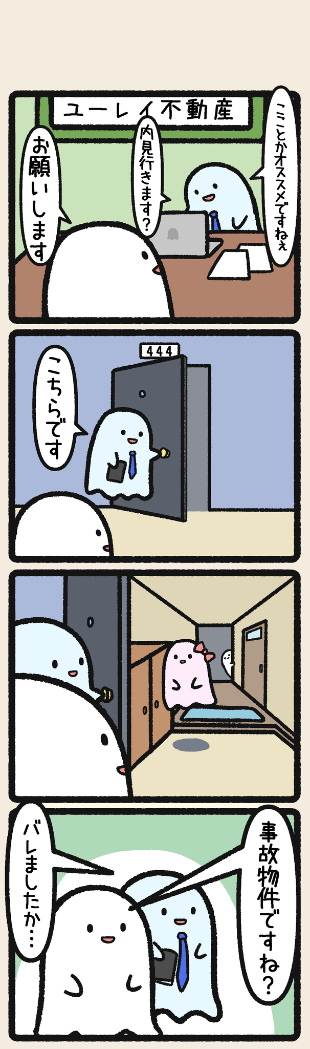 今日は過去描いたユーレイ君の漫画編です #4コマ #漫画が読めるハッシュタグ #ゆるいイラスト #リーゼントペンギンの4コマおマンガ