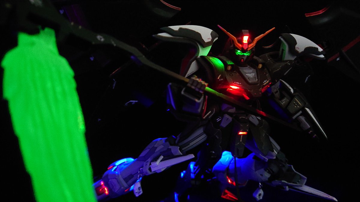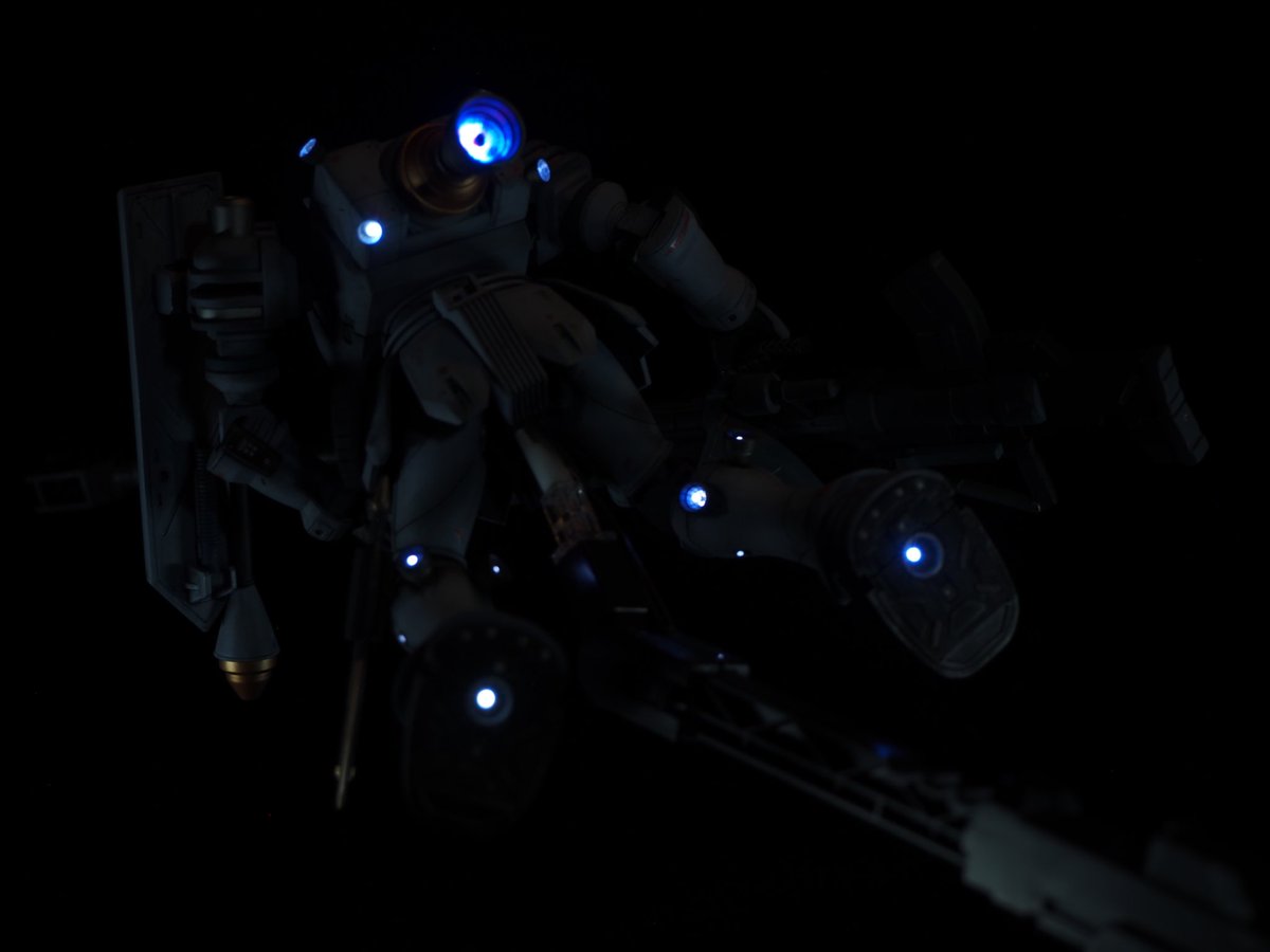 ヅダお披露目~🎶 土星エンジンの赤みが消えて しょんぼりーのです(*´・ω・`) スネの小さい穴もLED1つづつ入れたんですぅ☺️ なのでスネ見てやって下さい✨ 無言フォロー歓迎ですょ‼️ #ガンプラ #ガンプラ好きな人たちと繋がりたい #ヅダ