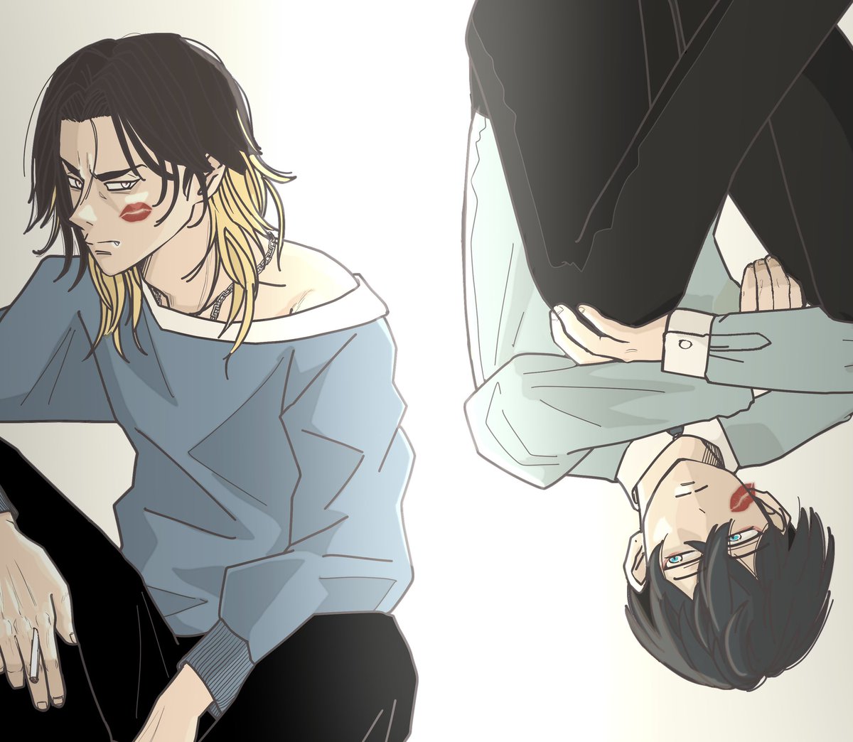 #ばじふゆと過ごす年末年始企画 1月3日 担当水戸 あの秋を越えて正月を迎え、一緒にお酒を酌み交わす、これってものすごく幸せだな、と思って描きました。 本誌のとおり、ほんのり記憶ありの❄️と、実は同じく記憶ありの🐺さんとなら、日常の幸せをたくさん汲み取っていけるんじゃないかな☺️