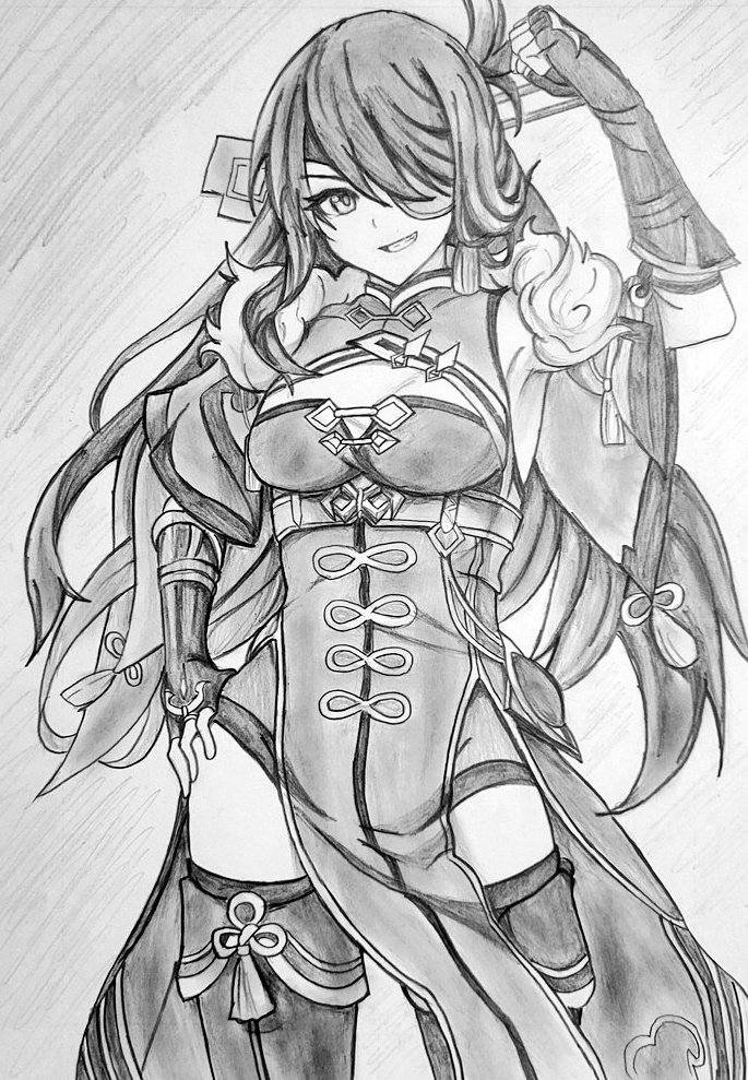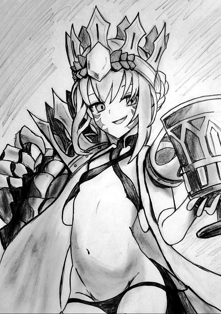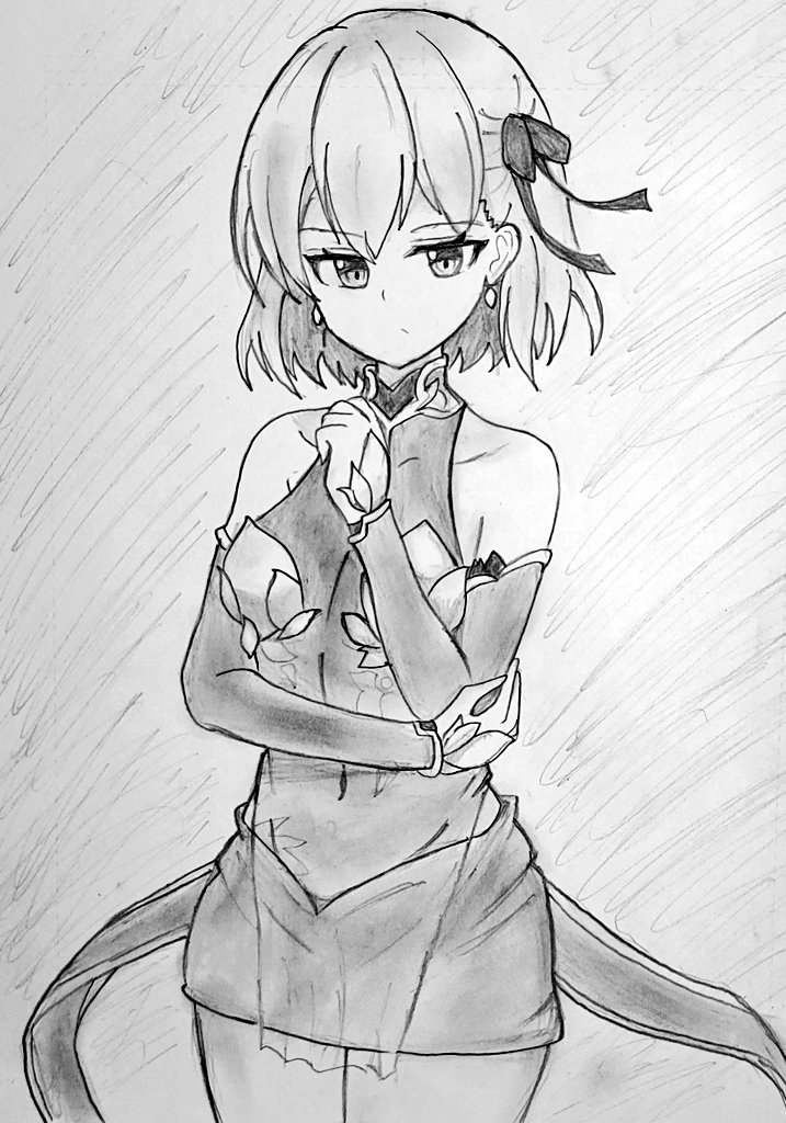 鉛筆だけで清少納言さん描いてみた。 クソむずかったです…… #FGO