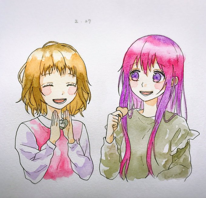 15 93 今日かなり遅れてバレンタインのお菓子つくりました🍭 #1日1ハニワ #HoneyWorks #早坂あかり #合田美桜 #水彩 ピンクきつすぎたな 、、 17/02/27 21:10