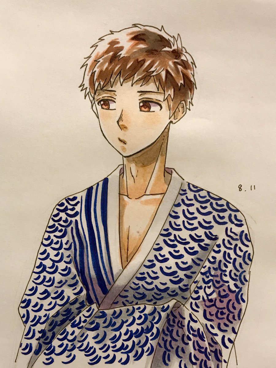 8 71 今日もまたオレンジ照明の下で 旅館の浴衣 、春樹といい勝負で虎太朗似合いそうっていう #1日1ハニワ #HoneyWorks #榎本虎太朗 #コピック 17/08/11 22:35