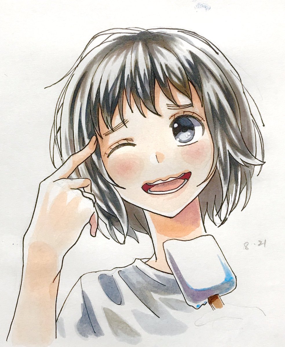 10 66 やっと追いついた ! #1日1ハニワ 暑い〜〜💥💥 #HoneyWorks #望月蒼太 #コピック 絶対「あかりんマジ天使…」って言ってるって思いながら描いた 17/08/06 23:33