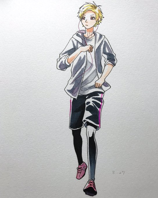15 94 8/14は裸足の日って書いてあったからザカザカと春輝💪🏻 #1日1ハニワ #HoneyWorks #芹沢春輝 #コピック 17/08/16 21:04