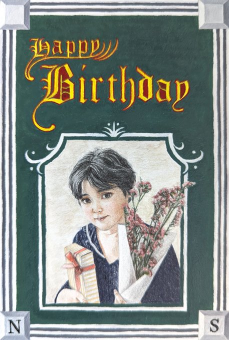 こんばんは。 今月も、身近な人にバースデーカードを描きました。今回の「お誕生日おめでとう」は、ドイツ語です🇩🇪その人の少女時代をイメージしました。 #色鉛筆画 #水彩画 #絵描きさんと繋がりたい #少女 #バースデーカード