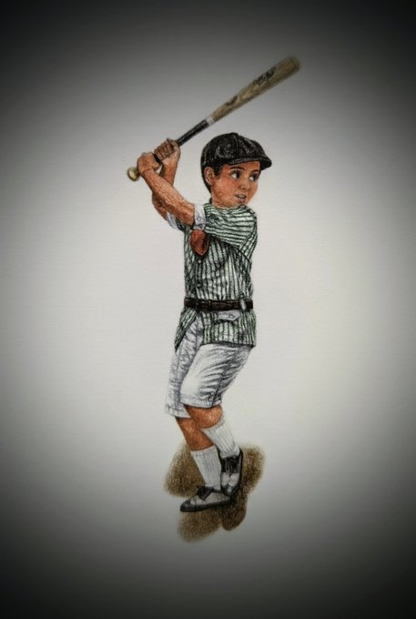 こんばんは。 野球バットを持つ男の子の絵を描きました✏️ #色鉛筆画 #絵描きさんと繋がりたい #少年 #野球